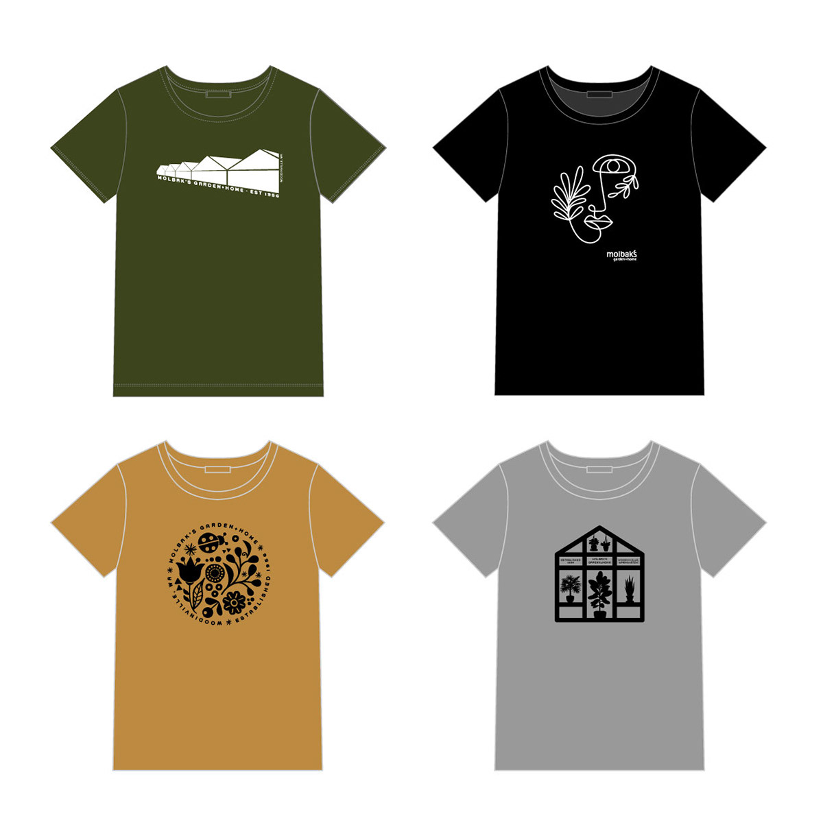 At Molbak's, I collaborated with merchandising and marketing teams to create a range of branded items, from wearables to rack cards.